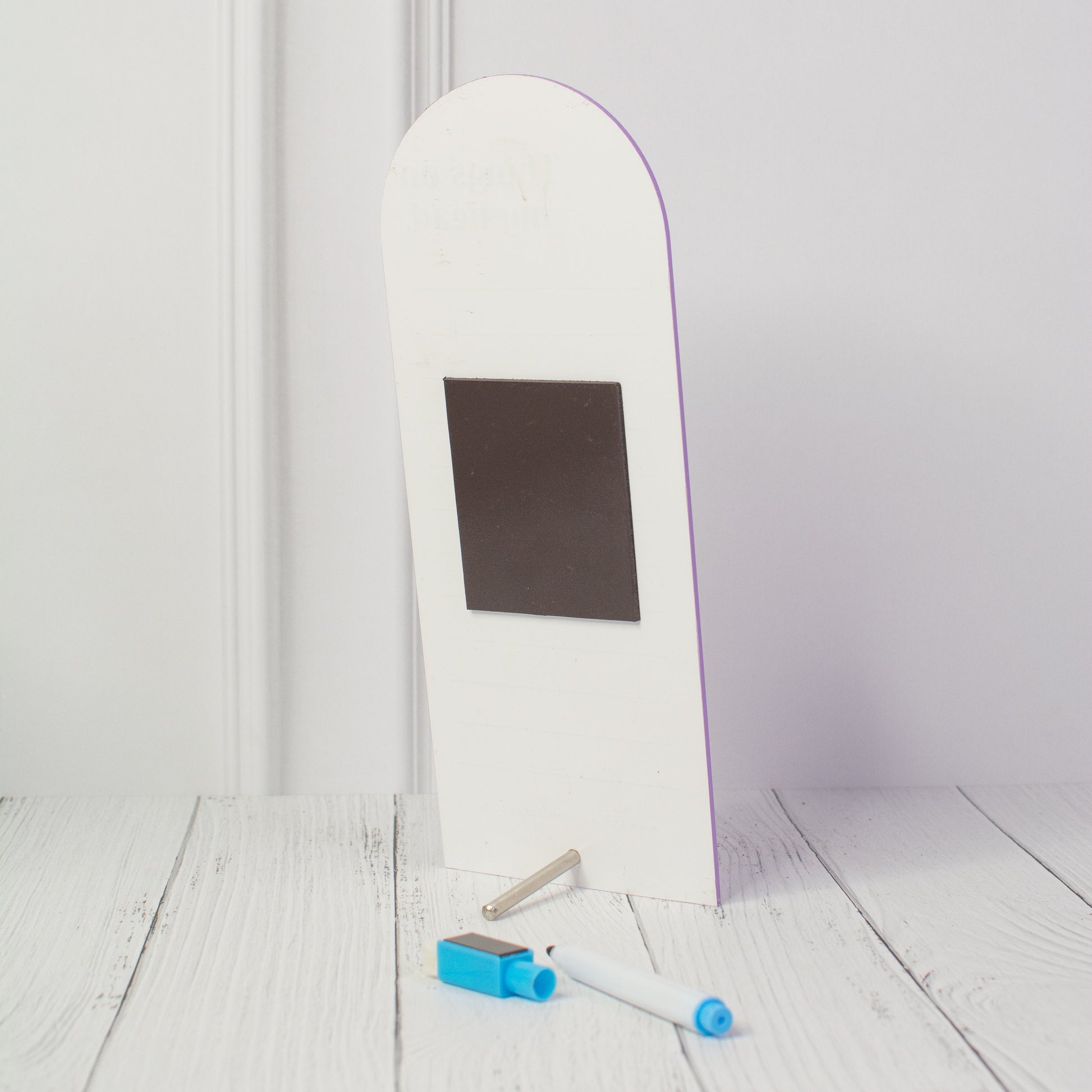 Comes with a fine tip white Board Marker, Magnet and a Stand.