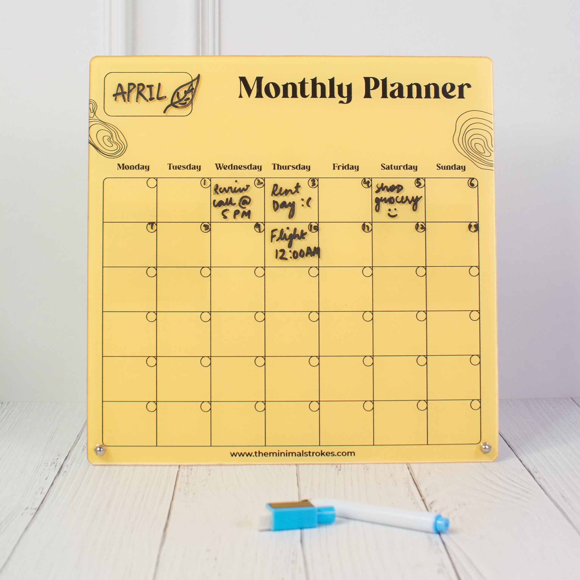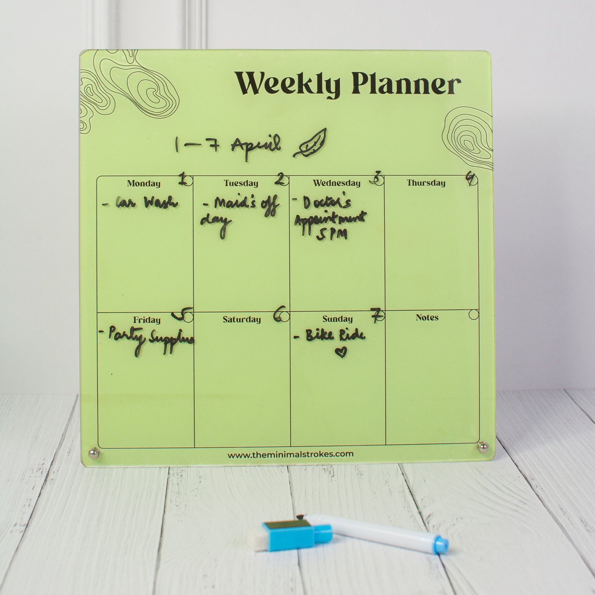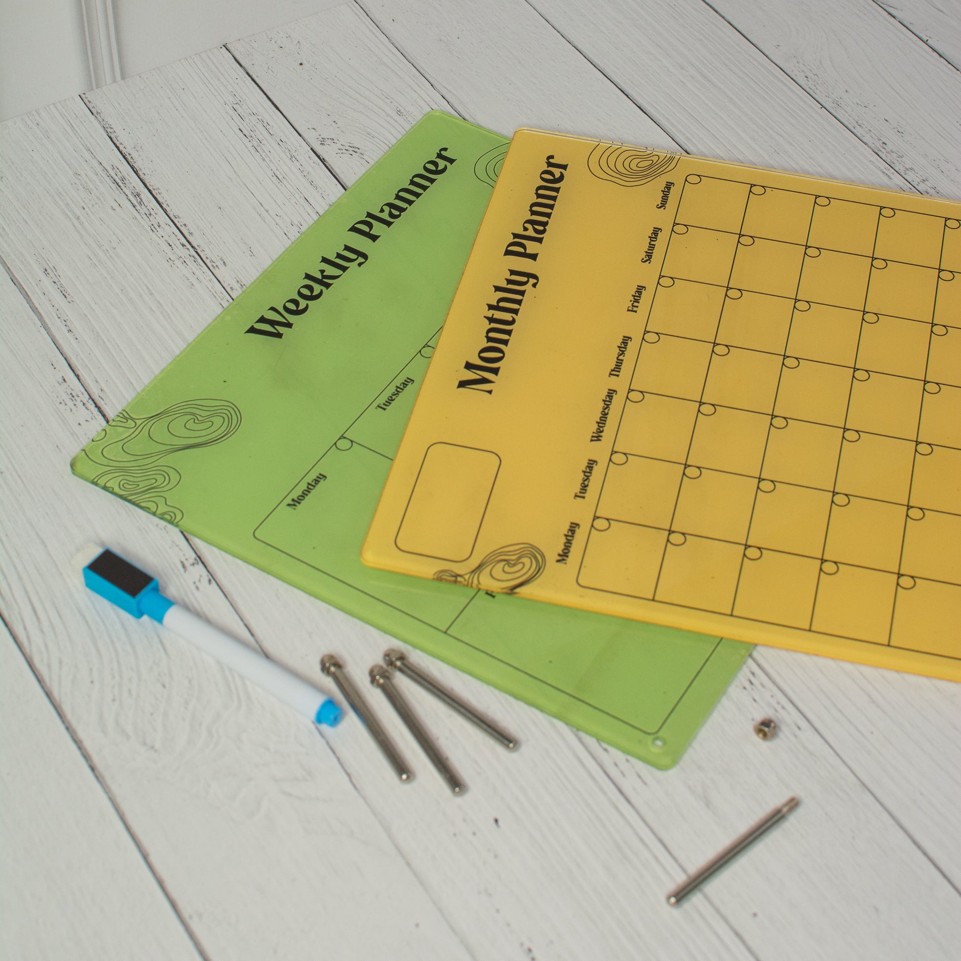 Package Contents: 1 Planner, 1 Magnetic Pen, 2 Screw Pins and 2 Peal-Off Magnet Patch.
